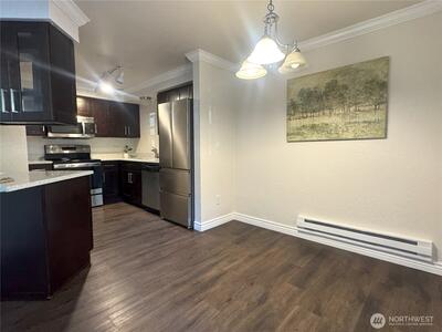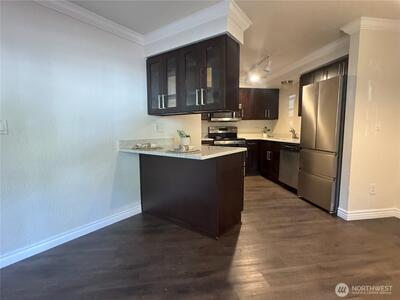 This ground-floor 3-bed, 2-bath condo brings fresh style to the center of Des Moines! Nicely updated with fresh paint, it offers sleek quartz counters, stainless appliances, modern cabinetry, and an in-unit washer/dryer set! Both bathrooms shine with updated vanities and contemporary finishes. Located in a secure, well-kept building just minutes from commuter routes, this home combines convenience with comfort. Step outside to your private fenced patio with storage. HOA includes, water, sewer, garbage and more! Parking spot included. Stylish, low-maintenance living in a location that makes life easy! Enjoy a pool and playground on-site. Buyer credit of $2000 with acceptable offer. Great opportunity to own a 3 bed/2 bath in this price range!