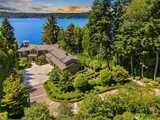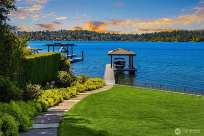 A remarkable debut—presenting this legacy waterfront estate for the first time ever. The result of a visionary partnership between Robert Maloney Architects and Thom Schultz / Mercer Builders, this gated European-inspired estate reflects a seamless union of design excellence and masterful construction. Set on over an acre with 100 feet of prime west-facing, no-bank Mercer Island waterfront, offering sweeping lake and city views, a rare private beach, and a dock with boatlift and cover. Arrive via a sweeping, garden-lined drive that winds to an elegant motor court. Exceptionally private and quiet—hidden from the street and neighbors. Inside, timeless architecture evokes grace and grandeur.