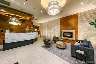 NEW Price, incredible value near 850 sqft east facing 1bd 1.5 bath luxury condo featuring expansive city views, abundant light, floor-to-ceiling windows, 10ft ceilings. New 2023 finishes: wide plank oak hardwoods spanning living & bedroom- New Pedinin kitchen cabinets, new SS appliances, new Kitchen island with white quartz, new glass tile back splash,new faucet, sink & garbage disposal. Brilliant design with fireplace & spacious balcony. 5 star amenities! hotel access floor 2-Saline pool, Jacuzzi, steam & sauna, fitness center & yoga studio. 18th fl- Private owners lounge- roof deck & dog run. Ez access to light rail, I-5, mins to Amazon, vibrant location. Hotel discounts for family friends. 1pk p-3 #80,1stg A/C,No rent Cap.