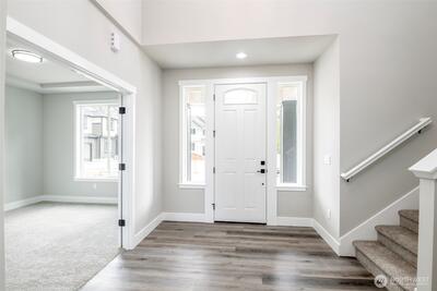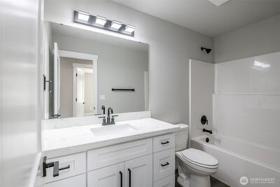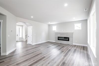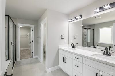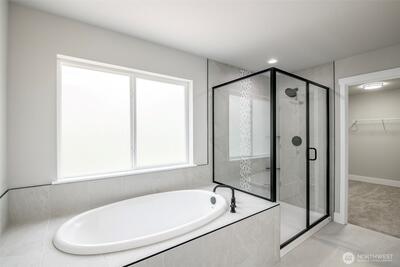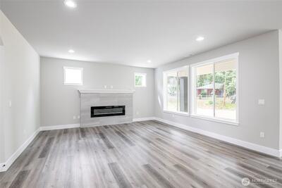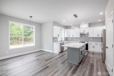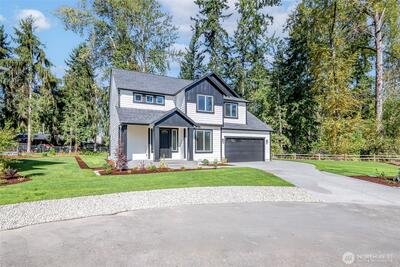 Overbuilt new construction on the largest lot in the community with beautiful views of Mt. Rainier, just minutes from Hwy 512. $21K builder credit to buy down interest rates or cover closing costs. This 5-bedroom, 3-bath home features full landscaping & irrigation, expansive usable yard space & a massive finished 4-car garage with 8’ insulated steel-backed doors. 9ft ceilings & a bright open-concept layout. Kitchen showcases quartz countertops & soft-close cabinetry with direct access to a covered patio—perfect for entertaining. Vaulted primary suite includes a 5-piece bath & oversized walk-in closet. Additional highlights include tiled fireplace, 40-year roof, Hardie siding, efficient heat pump, FULL appliance package, RV parking & NO HOA.