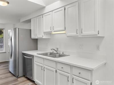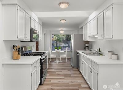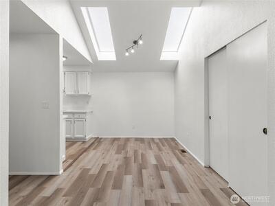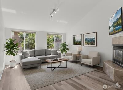 Welcome to your new home on Olympia's desirable Westside! This beautifully updated 3-bedroom, 2-bath residence offers a perfect blend of comfort and style. Step inside to an airy, open layout with vaulted ceilings, oversized windows, and skylights that fill the space with natural light. The spacious living area, complete with a cozy gas fireplace, is perfect for relaxing or entertaining.The primary suite is a true retreat, featuring a large walk-in closet and a private ensuite bath. Recent upgrades include new floors, toilets, and door hardware, plus a fresh coat of paint throughout. Outside, you'll find a serene, low-maintenance yard with a private front patio and a large deck in the fully fenced backyard—ideal for outdoor enjoyment. Motivated Seller!