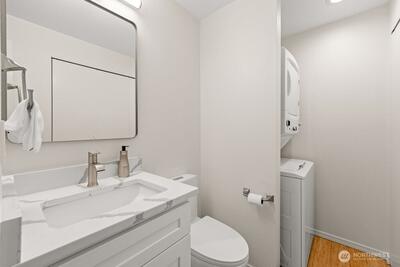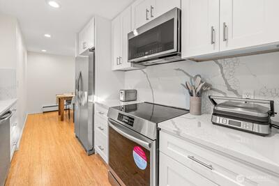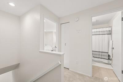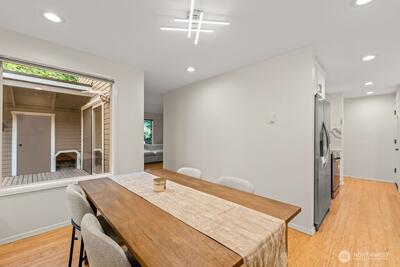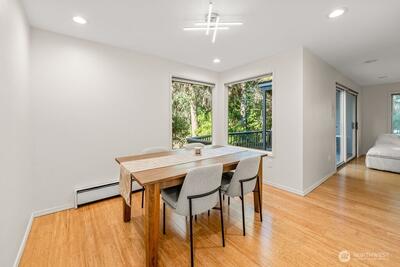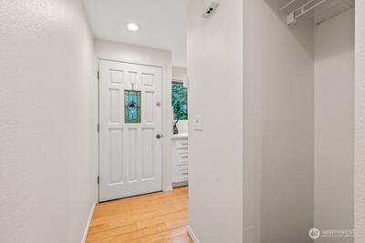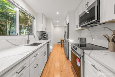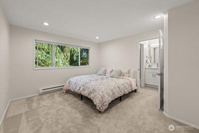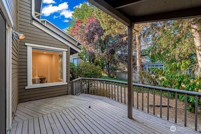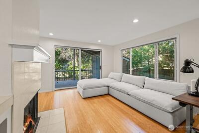 Your home in Regents Park, Bellevue - steps to DT & all it offers! Skip yard work & enjoy this remodeled (popcorn removed) 2bd/2.5ba TH (lives like SFR) w/ comfort, style & lock-n-leave ease. Main flr: bamboo flrs, wood FP, spacious deck for coffee/wine + extra storage. Kitchen flows to dining; pwdr & laundry on same lvl. Up: primary suite w/ WIC & ensuite, 2nd bd + full bath for guests/office. Private, tree-filled setting, top Bellevue schools. Walk/bike to parks, shopping, dining, waterfront & transit. Reasonable HOA & recently appraised @$915k = built-in equity! Perfect for busy pros, downsizers or anyone wanting urban convenience w/o condo living.