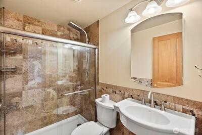 Spacious & beautiful waterfront brick home with stunning views of Totten Inlet on just shy of an acre! Lovely & quiet neighborhood w/community beach access. New roof. New furnace. New washer & dryer. Circular driveway w/tons of parking space. Expansive covered deck for indoor/outdoor living. Acacia wood flooring throughout! Main floor primary suite features a 5-piece bathroom, jetted tub & walk-in closet. Granite counters, double-oven and gas cooktop, eating bar & built in breakfast nook. Spacious lower-level w/ wood fireplace & built-in bar perfect for entertaining family & friends. Quiet, separate studio could be used for Home Office/Sleeping Space/Hobbies/Exercising. Studio includes 2 large closets ideal for storage. Griffin schools!