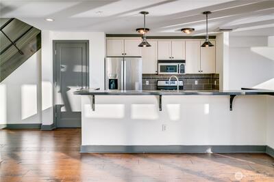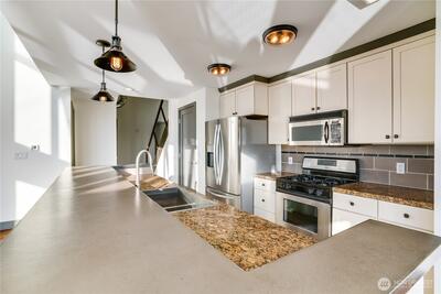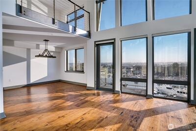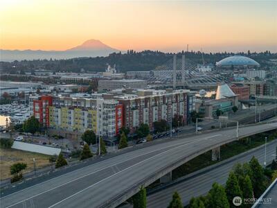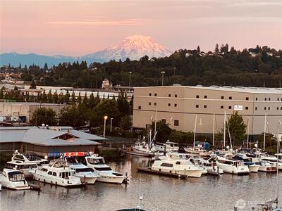 Leisure + luxury, nightlife & fun are all just outside your door when you own this Modern City Penthouse! Thea's Landing provides an exceptional urban lifestyle, spectacular views & amenities. This Top floor, 2-story condo enjoys views of Mt. Rainier + Thea Foss Waterway from all main living areas & the 2nd floor loft. Neighbors with the iconic Tacoma Glass museum, Union Station & dozens of local businesses & eateries - there's never a lack of things to do! Inside, remote operated blinds on all windows, upgraded cooling (2022), concrete countertops in the kitchen & tender care throughout. 2 parking spots + storage options; satisfaction of style, space & simplicity are here. Gym, community center, sauna and more. You can have it all, here.