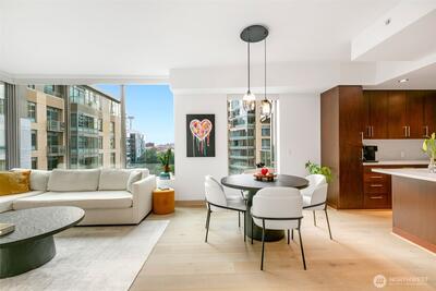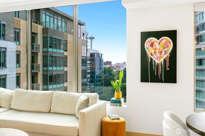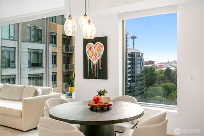 Live at the center of it all in 2200 Westlake — a premier concrete-and-steel community in the heart of South Lake Union.  This remodeled 1BR+den corner home offers expansive views of the iconic Space Needle, an abundance of natural light, and a versatile den perfect for office or guest space. Beautiful upgrades throughout — including a sleek kitchen & bath, updated flooring, lighting, appliances, and finishes — create a move-in ready home that blends comfort with sophistication. Venture outside to Whole Foods, top restaurants, yoga, coffee, and everything SLU offers. With 24-hour concierge, secure parking, luxe amenities, & no rental cap, this home is equal parts vibrant city living and smart investment. Come see it to experience the vibe!
