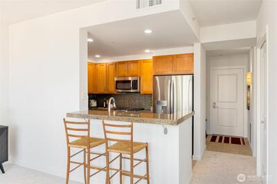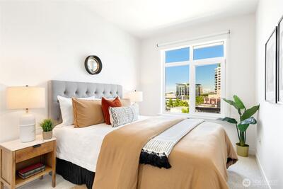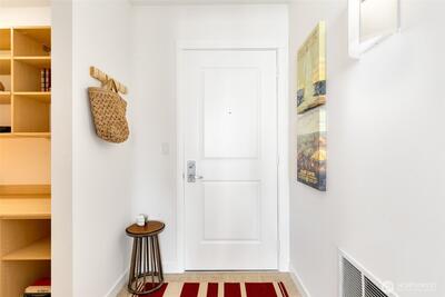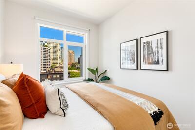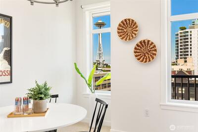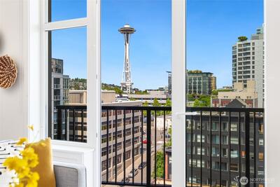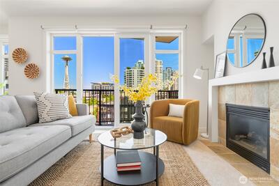 Experience elevated city living in this chic 11th-floor condo, perfectly positioned in Belltown, where Pike Place Market is your grocer, and the newly renovated Seattle waterfront is your yard! Enjoy modern elegance and fresh updates to this light and airy space with wide windows, balcony, stylish finishes, and iconic Space Needle views. The spacious well designed layout includes an additional office/flex space, full laundry room, gas fireplace, and walk-in closet. Luxury building offers 24/7 concierge, fitness center, rooftop deck, guest suites, secure parking w EV chargers and car wash station. Amazing shopping, dining, nightlife and culture, just outside your door!
