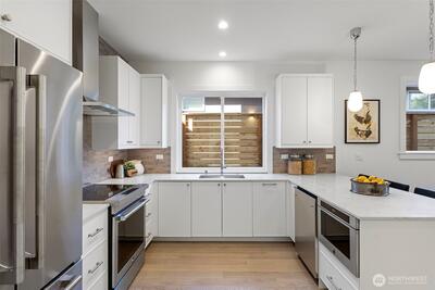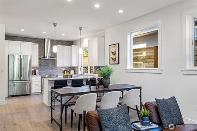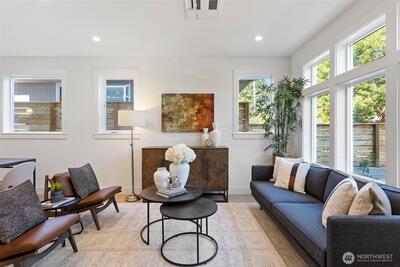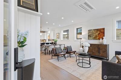 Experience modern living in this light-filled 5 home new construction community in Ballard by Roland Development! Sleek finishes and smart design define the open main level, complete with a welcoming entrance. Upstairs, two versatile bedrooms share a full bath, while the private top-floor primary suite creates a true retreat. Step outside to a quiet fenced yard with turf—your personal sanctuary for entertaining or unwinding with ease. With assigned parking with EV charging, nearby transit, and effortless access to Ballard’s lively scene—from breweries and the farmers market to Shilshole Bay—you’ll enjoy the perfect blend of style, comfort, and convenience!