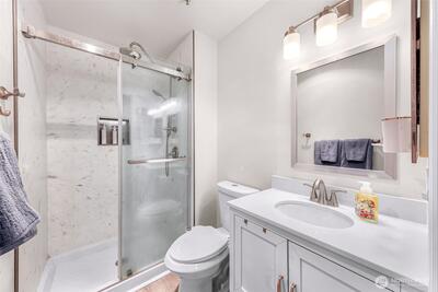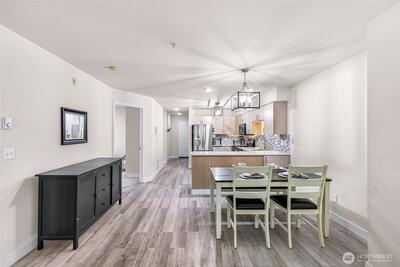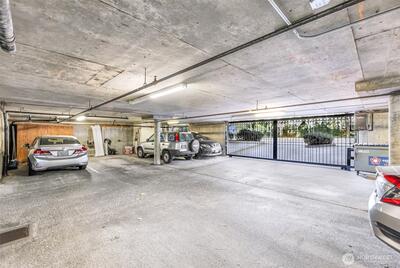 Well kept Kenmore condo end unit in highly secure building, no stairs, elevator & gated parking. This unit is nestled between Bothell and Lake Forest Park. New flooring throughout unit. Updated kitchen. No rental cap. Serene views of greenbelt. Open concept kitchen w/ breakfast bar and adjacent dining area. Living room has a wood burning fireplace & private balcony. Full primary suite with private bath and large closet. Additional bedroom and office (possible additional bedroom) with large closets. Generous utility room w/lots of bonus storage. Fresh paint and well lit. Close to shopping, 405, downtown Kenmore, and the Burke Gilman trail.