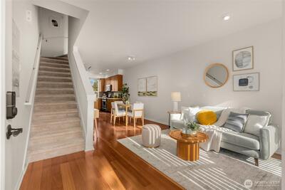Sophisticated and quiet 2BR + loft 2008 townhouse in an unbeatable location that sits between Redmond and Kirkland! Just Freshly Painted! Enjoy open living and dining with hardwood floors and large windows for abundant natural light that look out to courtyard area. Modern kitchen with sleek cabinets, stainless steel appliances, and gas cooktop. Upstairs offers two spacious bedrooms plus a versatile loft/den, great for office or additional bedroom. 2-car tandem garage and the home faces a courtyard perfect for BBQs. Arguably the best privacy, quietness and view in the community! Easy access to Microsoft, Google, Meta, transit, Redmond Town Center, parks, SR-520 & I-405. Award-winning Lake WA schools! Pre-inspected, LOW HOA dues and no rental cap—ideal for living or investment!