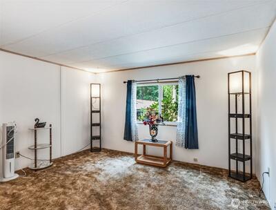 Enjoy affordable lifestyle living in this move-in ready 3 bedroom home in an all-ages community w/space rent just $650/mo!! With 1,680 SF, vaulted ceilings & 2X vinyl windows throughout, this home offers comfort & flexibility. Split floor plan places the primary ste—complete with walk-in closet and full bath—on its own private wing, while 2 bedrms & another full bath sit opposite for ideal separation. Spacious kitchen, dining & open living rm create the perfect flow. Fresh paint, 2020 furnace, washer/dryer, and all appliances included mean worry-free convenience. Outside, relax in your private seating area, enjoy a low-maintenance yard, detached shed, & covered prkg—all close to parks, shopping, restaurants, JBLM, I-5 and transit!