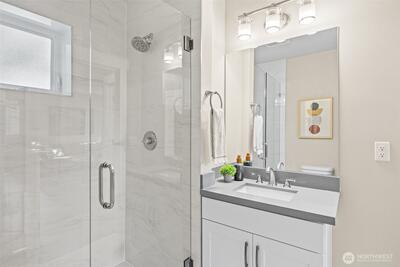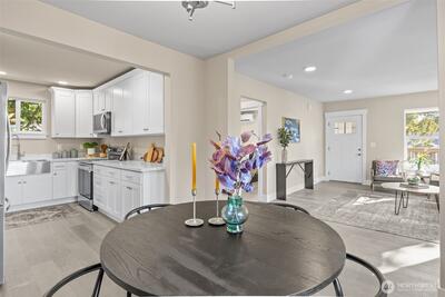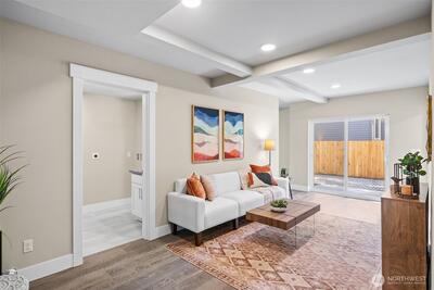 Stylish 2025 down-to-studs remodel designed for modern living. Featuring 3 bedrooms, 2+ bonus rooms, and THREE 3/4 baths, this home lives like a single-family with patio. The open layout, lots of natural light into the kitchen and living spaces, perfect for gatherings. Off-street parking with EV charging. Located in the heart of North Seattle near Wallingford, steps from groceries, parks, dining, and major bus routes, with Northgate minutes away.