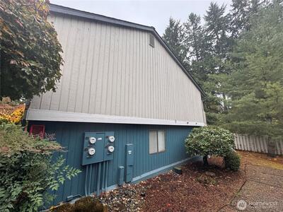 CASH ONLY 2 PARKING SPACES come with this secluded end-unit condo in Winchester Heights! This 3-bed, 2.5 split style unit is available as a short sale. Upper level features vaulted ceilings, wood stove, deck, half bath, utility room, open kitchen and living room floor plan. Lower level is 3 bedrooms and 2 full baths. Primary Suite with patio storage backs to a wooded area. plus 2 covered parking spaces. HOA covers water, sewer, garbage, basic cable, and more. Exterior painting is planned for spring. Great location just minutes from freeway access, Sounder train, and local amenities. Seller is not able to make repairs, so property is being sold As Is.