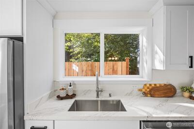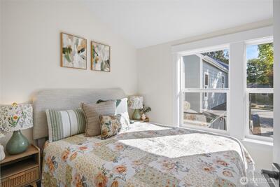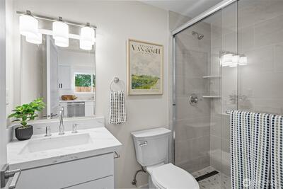 Stylish 2025 standalone cottage / DADU with 986sf featuring 2 bedrooms and TWO 3/4 baths. Enter on the main, open layout with kitchen and living space and bath. Lots of natural light, quartz countertops, new ss appliances. Located in the heart of North Seattle near Wallingford, steps from groceries, parks, dining, and major bus routes, with Northgate minutes away.
