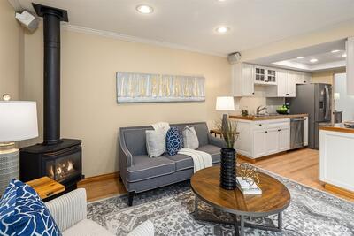 Nestled in nature, this rarely available, single-level end-unit home in sought-after Woodcreek features vaulted ceilings, skylights, and clerestory windows that make it feel light and spacious. Enjoy newly refinished hardwoods, fresh carpet, and a primary suite with walk-in closet, three-quarter bath, and private patio access. Two additional bedrooms offer flexibility for guests or an office. Extras include finished attic storage, central AC, 2-car garage, and two enclosed patios. Woodcreek offers manicured grounds, pool, tennis/pickleball, and clubhouse. Conveniently located close to shopping, schools, trails, and transit. Pre-inspected.