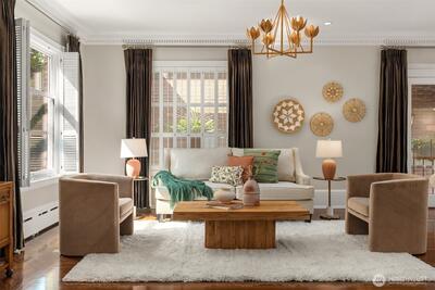 Welcome to Merrill Court, an exceptional home in Capitol Hill’s historic Harvard-Belmont District. This residence blends timeless charm with modern functionality, offering 5 bedrooms, an office, and 4.25 baths. Gracious living spaces feature classic detailing & two elegant fireplaces. Original architectural details have been preserved, reflecting the home’s rich history. The chef’s kitchen is a central gathering space, complemented by a rare second full-service kitchen—ideal for entertaining or multi-generational living. Lush, landscaped outdoor areas provide a peaceful retreat perfect for alfresco dining. Set on a quiet, tree-lined street, Merrill Court offers privacy just minutes from top restaurants, shops, parks, & downtown Seattle.