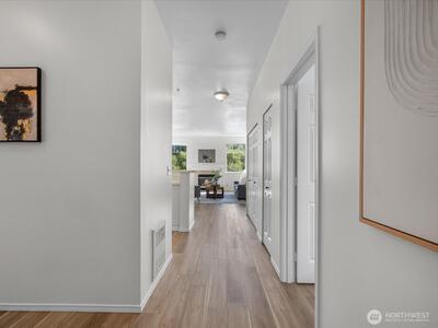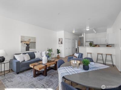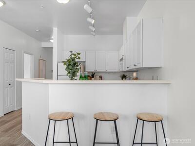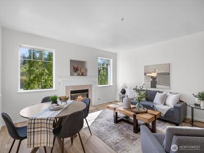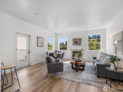 Top-floor 2 bedroom/2bathroom condo at Riverfront Landing! Freshly updated with Bayhill Blonde luxury vinyl plank flooring, new interior paint, and hardware throughout, this home is move-in ready. Spacious open layout with gas fireplace and balcony perfect for entertaining. Primary suite features a walk-in closet and spacious private bath. Secure building with elevator access and two parking spots in the garage. Enjoy the community’s unique setting along the Sammamish River with direct access to the Burke-Gilman Trail and river launch for kayaks/canoes. Pet-friendly, no rental cap, and well-maintained HOA. All this plus vibrant downtown Bothell at your doorstep with dining, shopping, UW Bothell, and easy access to 522 and I-405.