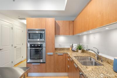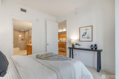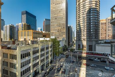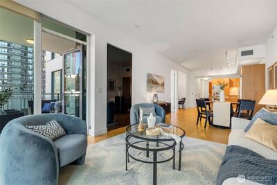 Live a luxury lifestyle at Escala. First class amenities wrapped up in a gorgeous package right in the heart of downtown Seattle. Light and bright with NW facing window walls and a dual access covered deck overlooking the city. Spacious open living layout with room to work, play and entertain. Contemporary kitchen with Pedini cabinets, granite slab counters, gas cooktop and space to add an island or table to further enjoy your culinary creations. Oversized bedroom with ensuite 5-piece bath creates the perfect retreat with direct access to the large corner deck for fresh air enjoyment. Convenient half bath, desk nook, hardwood floors and A/C are the cherry on top. Garage parking with EV charger and additional storage included.