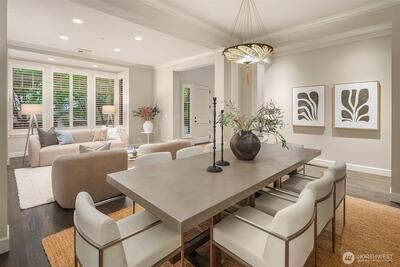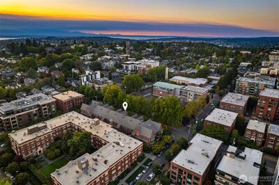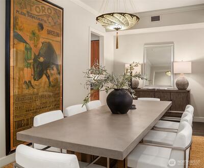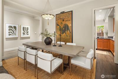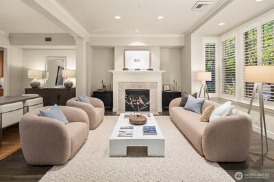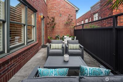 One block from Kerry Park, this rare South Slope QA townhome blends timeless design with modern amenities. It features 10 ft ceilings, hardwood floors, and a grand dining area. The main level includes a formal living room with gas fireplace, a well-equipped kitchen with stainless appliances and gas cooktop, and a family room opening to a large south-facing patio. The spacious primary suite offers a second fireplace, large walk-in closet, and 5-piece bath with limestone finishes. Enjoy central A/C, secure gated entry, garage with two deeded parking spaces, and storage. With a 92 Walk Score, this home provides unmatched access to downtown, Climate Pledge Arena, and Queen Anne’s vibrant shops and restaurants.