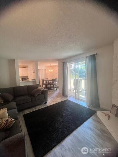 Peaceful Top Floor Condo with Balcony views & modern touches. Welcome to this spacious three-bedroom condo nestled on the quiet top floor of a two story building. Each bedroom offers flexible use - perfect for a nursery, home office, or a cozy den to suit your lifestyle. Step out onto the private balcony and take in the sweeping territorial views. Whether you're watching the sunrise with your morning coffee or enjoying the gentle fall of rain and snowflakes from the living or dinning area, this home invites you to slow down and savor the moment. A wood burning fireplace adds warmth and ambiance, creating the perfect setting for every season. Homeowner Dues include: Common Area Maintenance, Garbage, Lawn service, Sewer, Water