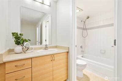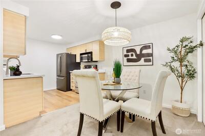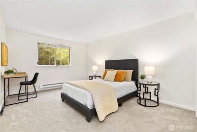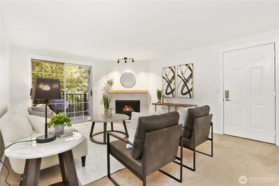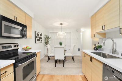 Chic and refreshed condo in the heart of downtown Kirkland! This light-filled home offers a spacious living room with fireplace and deck overlooking green space, a stylish kitchen with brand-new quartz countertops and flooring, and a dedicated dining area. The layout includes two bedrooms, two full baths including an en-suite, plus in-unit laundry. All appliances stay! Unbeatable location just steps to Google, Kirkland Urban, shops, dining, fitness studios, library, groceries, summer Farmers Market, and the waterfront. Community amenities include pool, hot tub, and beautifully maintained grounds. No rental cap!