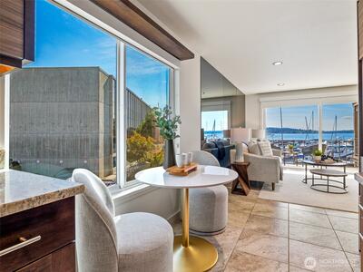 Discover refined waterfront living on Lake Washington in this stylishly updated 2-bedroom Kirkland condominium. Expansive lake views frame modern interiors, where a fully renovated kitchen, mini-split A/C, fresh paint throughout, and bright open living spaces create a comfortable home with modern elegance. Floor-to-ceiling windows and a private balcony invite natural light and stunning scenery, while community amenities include a pool and direct waterfront access. The soothing sound of waves lapping the shore offers a daily reminder of lakeside serenity. Set in Kirkland’s most walkable neighborhood, you’re steps from cafes, boutiques, and parks—making this home a rare blend of tranquility and convenience.
