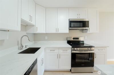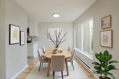 Beautifully remodeled 2-bedroom ground floor corner unit with contemporary finishes and abundant natural light. Expansive windows frame Puget Sound and harbor views, while the smart floor plan offers comfort and functionality. Modern updates make this home stylish and move-in ready. Corner unit maximizes sunlight, and Google Fiber adds top-tier connectivity. In fall, leaves drop to reveal beautiful views of Puget Sound and the Olympics, enjoyed from your family room and deck. Located in North Beacon Hill, enjoy quick access to shopping, dining, schools, medical facilities, transit, T-Mobile Park, Lumen Field, and downtown. Combining tasteful upgrades, natural light, and a prime location, this condo delivers the best of Seattle living.