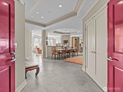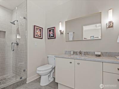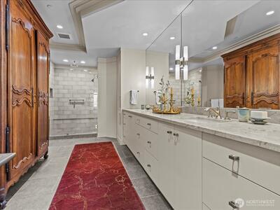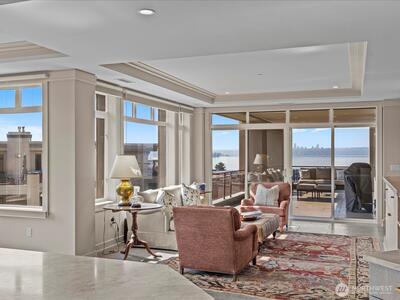 Welcome to the premier luxury condominium at the Shumway Condos. Enjoy an elegant and comfortable lifestyle within walking distance of DT Kirkland. Take in the breathtaking unobstructed Lake Washington, Seattle skyline and Olympic mountain views while you entertain effortlessly indoors or out. Timelessly remodeled with an open floor plan including 3 ensuite bedrooms, home office, living room, dining room, family room, and kitchen with eating space. Three car parking with EV charger, and large storage unit conveniently located close to your parking spaces.