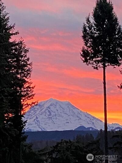 5 acres with a great view of Mt Rainier from sunrise to sunset in gated community with limited homesites. Level building area of 3+/- acres that is lightly treed. Land currently in Forest Land Taxation Program. Land sits on the north rim high above the Carbon River and offers spectacular territorial views in addition to beautiful views of Mt. Rainier. Deer and elk roam the area. Best view lot of Mt Rainier under $400,000 in the area. Contact your broker for info packet.