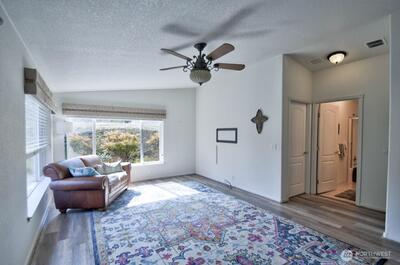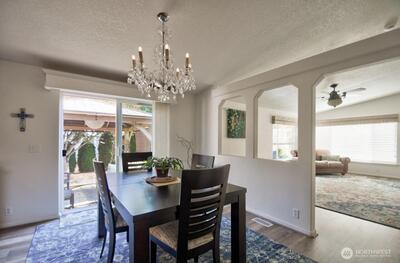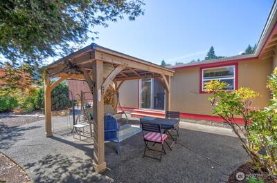 Welcome to beautiful Klahowya Estates 55+ gated community. Home is a spacious 1,782 sq ft with 3-bedroom & 2 bathrooms. Common living areas feature vaulted ceilings, grand picture windows with upscale window blinds, hard surface flooring, solar tubes. Plentiful kitchen cabinets & counter space, center kitchen island, pull outs in pantry, stainless steel appliances. Primary bedroom with ensuite 5-piece bathroom and heated tile floors. Front loading washer & dryer, heat pump and on demand 12kw gas generator. Spacious patio with gazebo, rose garden, and mature landscaping. Delightful yard great for entertaining or quiet relaxation. Cats, Dogs & owners to be approved by park manager.
