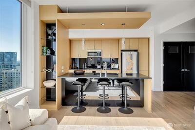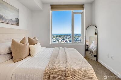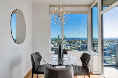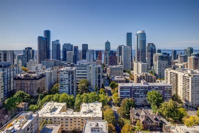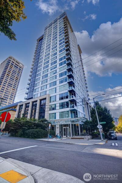 Welcome to the Luma Condominiums. Beautiful corner unit featuring warm high-end finishes, central A/C, views of the city, lake union, open concept kitchen and living room with a cozy balcony. Large primary bathroom with spacious walk in closet. Exclusive building amenities such as a 24-hour concierge, rooftop hot tub, a expansive top floor clubhouse and rooftop terrace, catering kitchen, onsite gym, dog run with dog washing station and secure parking garage and EV charging stations. Ideally located in the quiet First Hill neighborhood, just blocks from Capitol Hill and minutes from downtown and close access to public transportation.