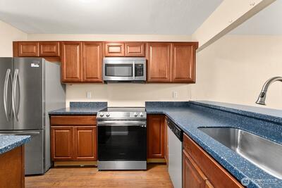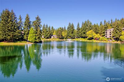 Discover resort-style living in the desirable Sixty-01 community, perfectly situated between Bellevue and Kirkland in the heart of Redmond. This spacious loft sits directly on the water, offering tranquil views and a new water feature just outside your door. The community provides 4 pools, a fitness center, clubhouse lounge, on-site bar, walking trails, and beautifully maintained grounds, all designed for relaxation and convenience. Just seconds from the Bellevue Golf Course and with quick freeway access, the location is unbeatable—close to shopping, dining, parks, and entertainment. Strong HOA reserves and a well-managed association add peace of mind, making this home the perfect blend of comfort, lifestyle, and Eastside convenience.
