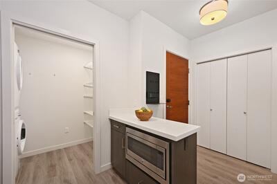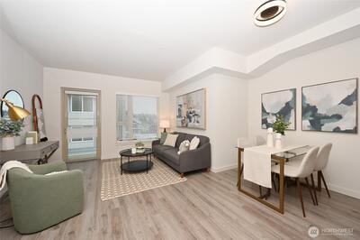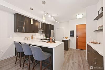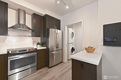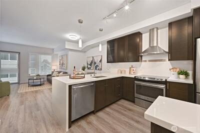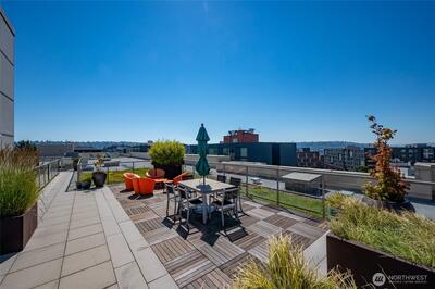 Enjoy life in the heart of Ballard with easy access to all its amenities. You will love this top floor with 8 1/2 ft. ceilings. A spacious 1 bedroom/1 bath with a long balcony. A very quiet corner unit in a newer building (2016) with on-site facility manager, gated garage parking, exercise room and garage storage space. Sensational, expansive roof top deck for entertaining and barbeque. A great building,with exceptional access to a plethora of restaurants, cafes, shopping and only minutes to downtown. Two pets allowed (dog/cat) with some restrictions. No rental cap.