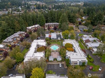 Set inside the Oakbrook Golf Course community, this 2 bed / 1.75 bath condo delivers low-maintenance living with two rare perks: secure garage parking, outdoor parking, and a dedicated storage unit. The main space flows to a covered balcony overlooking landscaped grounds. In-unit laundry adds everyday convenience. The calm primary suite includes a private 3/4 bath and walk in closet; the second bedroom works well for guests or a home office. Community amenities include a clubhouse, pool, BBQ areas, and manicured common spaces. Minutes to shopping, dining, parks, and commuter routes with straightforward JBLM/Tacoma access.