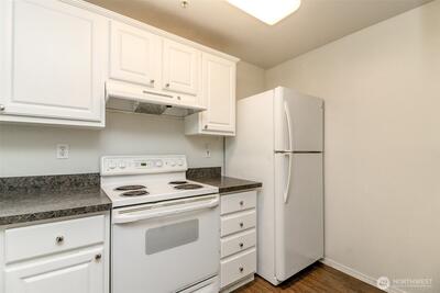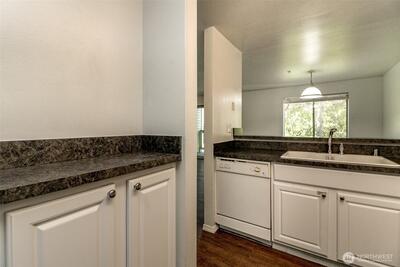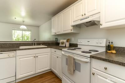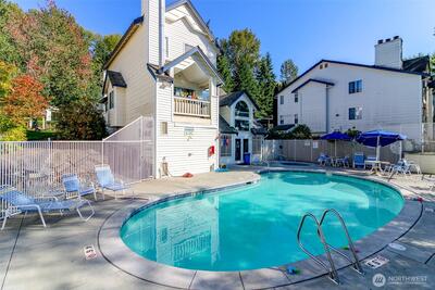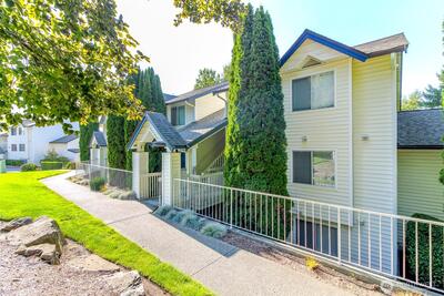 Welcome to Nautica by the Lake! This pet-friendly 2 bed/2 bath is perched above Lake Washington, in a peaceful tree-lined setting. This unit features a no-stairs entry & hard-surface flooring throughout. Kitchen includes ample storage & counter space. Open concept dining & living room w/wood burning fireplace for cozy nights at home. West-facing private deck welcomes in afternoon sun. Recreation building features fitness center, game room, kitchenette & outdoor pool & hot tub! Full sized washer & dryer in unit. 1 covered assigned parking space, plus plenty of visitor parking. No rental cap. 2025 special assessment paid in full by seller. Ideal location for easy commute in any direction, with plenty of shopping & waterfront parks nearby.