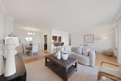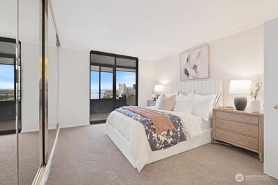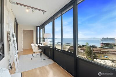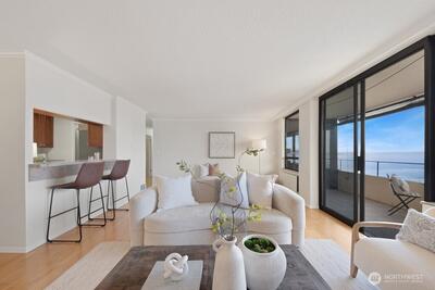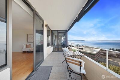Refined living w/breathtaking, front-row views of the Puget Sound, Mountains & Seattle waterfront. Generous light filled living & dining. Updated kitchen open to the view w/stainless appliances designed w/an eye towards style & function. Spacious bedrooms + king-sized primary suite. Versatile spaces include an enclosed deck home office, a covered outdoor deck ideal for relaxing with your favorite beverage & tons of storage. Freshly painted & move-in ready. Harbor House provides secured entry, 2 secured parking & an opulent lifestyle in a premier Uptown location just off Mercer. Superbly located close to Seattle Center, great food, shops, services, cultural experiences, transportation & the very best of Seattle living. Love where you live!