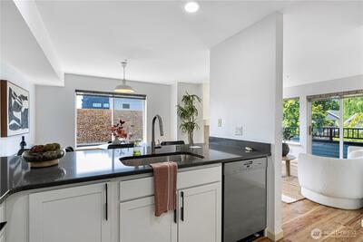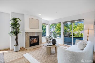 Light-filled corner condo in the vibrant Maple Leaf neighborhood! This 2-bedroom, 2-bath home offers a spacious open layout with generous natural light, a gas fireplace for cozy nights, and a large private deck ideal for relaxing or entertaining. The well-appointed kitchen, in-unit laundry, and ample storage add everyday convenience. Includes one secure garage parking space and elevator access. A safe sotrage unit on 4th floor. Enjoy a shared, fenced yard perfect for summer gatherings. Just a short walk to parks, cafes, shops, and great transit options including bus and light rail. Comfort and location in one!