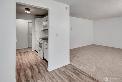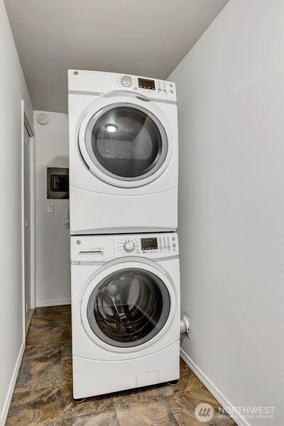 Rarely available, updated 2-bedroom first floor condo in College Park! Features fresh carpet, new wall paint, and modern laminate wood flooring. Spacious rooms are filled with natural light, highlighted by a wall of windows in the great room. Kitchen and bathroom are remodeled and there is a brand new oven. Covered, private patio for entertaining. Includes stacked front-loading washer and dryer and exterior private storage closet for your hobbies. Enjoy resort-style living with an outdoor pool and well-managed HOA with no special assessments. No rental cap—great for investors. Minutes from Bellevue College, Microsoft, Downtown Bellevue, and I-90. Move-in ready!