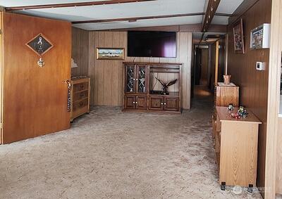 Doublewide in 55+ Senior park close to shopping and freeway access. This 3 bedroom with1.75 bathrooms is rare in this MHP. Corner lot with an Enclosed garage attached to the mobile. This lot has a low maintenance fenced back yard with plenty of storage in the sheds. Don't wait, the park rent is very reasonable.