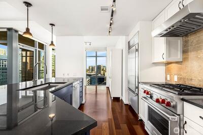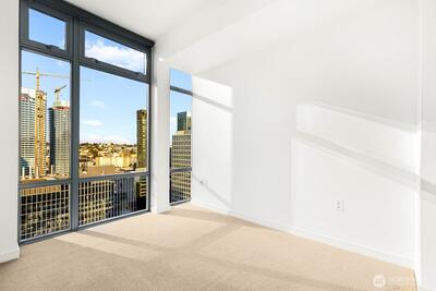 Discover this breathtaking end-unit penthouse on the 33rd floor of The Cosmopolitan with breathtaking vistas. This urban retreat features hardwood floors, a gas fireplace, and a gourmet kitchen with granite counters, Wolf appliances and Sub-Zero fridge. Each bedroom offers plush carpeting and walk-in closets; the primary suite includes a modern en-suite bath with a rain shower and dual vanities. Enjoy in-unit washer/dryer and built-in storage. Relax on your private balcony with breathtaking vistas. Amenities include 24-hour concierge, fitness center, spa with sauna, and a rooftop deck showcasing the Space Needle, Lake Union, and Puget Sound. Perfectly situated in Denny Triangle, near Amazon, Whole Foods, and light rail. Don't miss this gem!