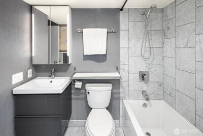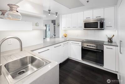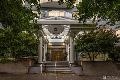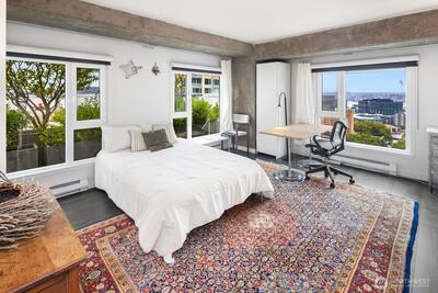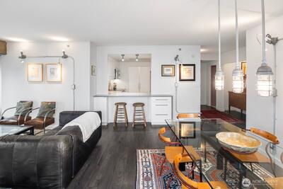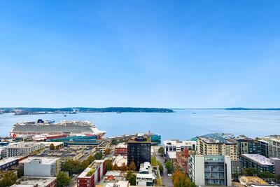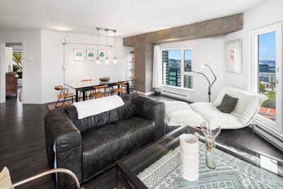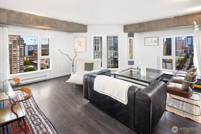 Elliott Bay, Lake Union, Cascade Mountains & City Views from this beautifully situated condo at Arbor Place! Expansive windows frame the dynamic Seattle skyline. A sophisticated palette of modern white pairs seamlessly with dove-gray engineered hardwoods and architectural exposed concrete columns. The chef’s kitchen and spa-inspired bath have been thoughtfully updated with sleek finishes and premium details. Convenient in-unit laundry. The spacious primary suite features frosted-glass closet systems for stylish organization. Residents of Arbor Place enjoy a walk-to-everything location plus 24/7 concierge service, fitness center, pool, and expansive community terrace.
