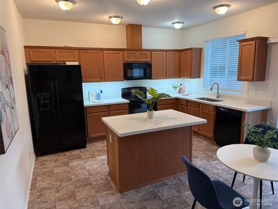 Nicely updated townhome in convenient Pacific location. New paint, carpet, vinyl, 2" blinds, quartz kitchen counters, & wave undercabinet lighting. Uncommon 4th bedroom or 3 + den if you prefer. Big driveway plus oversized one car garage with storage, workbench & new floor coating. Fenced back yard w/ patio, lives more like a house, and NO HOA means monthly savings! Low traffic street with parks and access to Interurban Trail just steps away. Conveniently located near HWY 167 and amenities