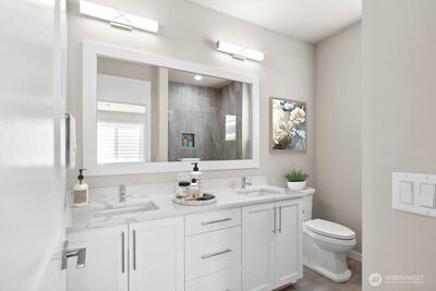 This northeast facing Res. 1 offers 3 beds, 3.5 bath w/ 2 car garage. Terrific sunny south view off your covered deck! Grass in front w/ a north-facing lower patio! 2 bedrooms up & a lower-level bedroom/den w/ its own entrance & bathroom! Enjoy cooking in your open kitchen w/ oversized island in the heart of the home. Spacious private suite boasts separate sinks & walk-in closet. You'll love the slab quartz counters, 5 burner gas cooktop, soft close cabs, undercabinet lighting, blinds, surround sound, refrigerator, and huge covered Trex deck off the dining rm. Lake WA schools, 220V car outlet, Smart Home features & A/C too! Buyers must register broker on site at first visit, including open houses. Below market rates for qualified Buyers.