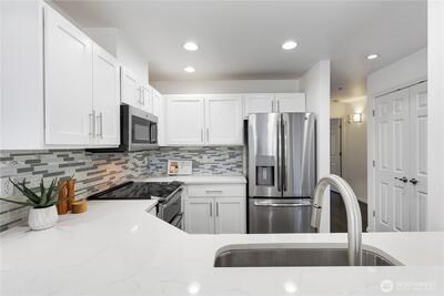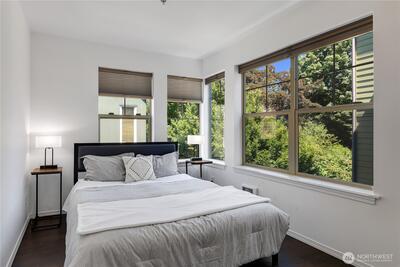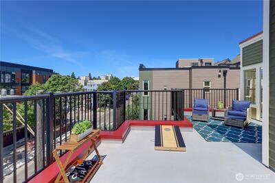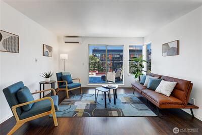 Modern luxury in the heart of Fremont! This beautifully updated Penthouse condo offers 1,200 sq ft of indoor/outdoor living, including a 250 sq ft west-facing deck perfect for sunset views. Enjoy a spacious primary suite w/ an amazing walk-in closet, two spa-inspired baths, bidet & a designer kitchen w/ stainless appliances, A/C, and spacious design. Rare 2 parking spots in secure garage. Pet-friendly w/ no rental cap. Just steps from top coffee shops, bakeries, & restaurants—Fremont living at its best! Quick access to downtown, Gas Works Park, & Burke-Gilman Trail make this an ideal location for work & play. Turn the key and love where you live—this one truly checks all the boxes for comfort, convenience, & inspired city living.