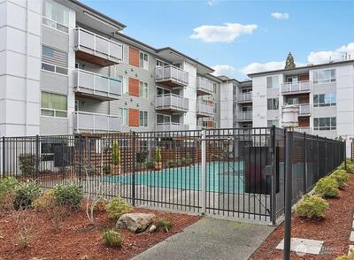 This two bedroom one bathroom condo is in the heart of Northgate with a 5 minute walk to the mall, Kraken hockey iceplex and Thornton Creek natural trail. Includes a private covered patio next to the gardens, in-unit washer and dryer, a large walk-in closet and reserved parking space in a gated lot. Building has a well maintained outdoor pool open during the summer. HOA dues include cable, high speed internet, water, sewer, garbage and landscaping. Great location for commuting so close to the Northgate Lightrail Station for direct rides to Sea Tac airport, and I-5 easy access to express lanes. Investor friendly-no rental cap