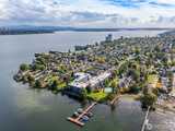 Elevated top-floor living awaits in this light-filled Lake WA residence. Walls of glass frame sunrise courtyard & water views, while soaring vaulted ceilings & fireplace create an elegant yet inviting ambiance. Designed for both comfort & convenience, the home includes in-unit laundry, new stainless appliances, two storage lockers, a premier garage spot, ample guest parking, & on-site management. Nestled on 3.3 manicured acres beautifully renewed with a $12M remodel—new siding, TPO roof, windows, decks, & more. Stroll to the vibrant cafés and restaurants of Madison Park, or unwind at home by the heated pool & private dock with moorage. A unique opportunity to enjoy refined resort-style living in one of Seattle’s most coveted neighborhoods.