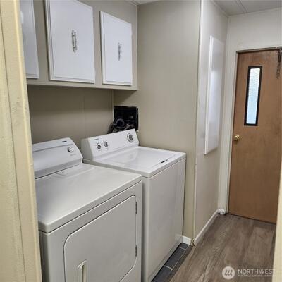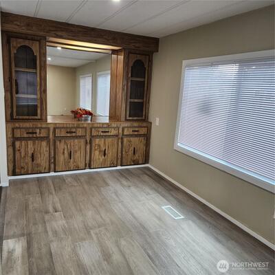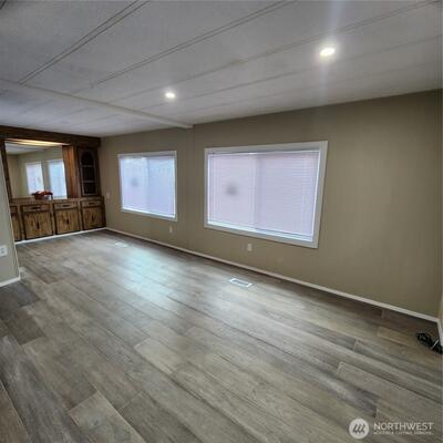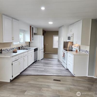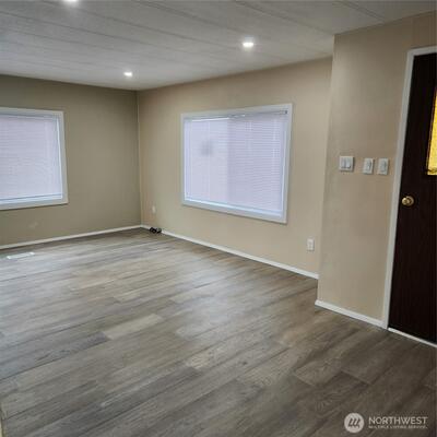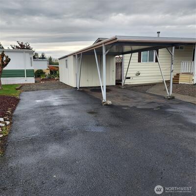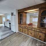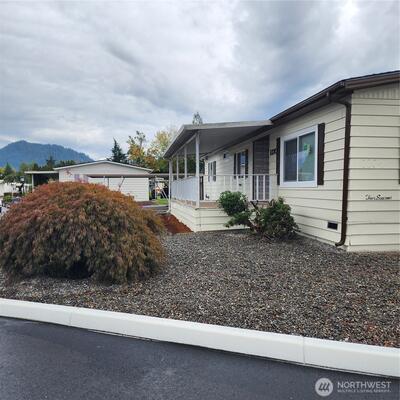 Welcome to Mountain Villa Estates, a friendly 55+ community in Enumclaw! Nestled in the Cascade foothills. The neighborhood combines the charm of small-town living with the beauty of the Pacific Northwest. Residents enjoy a thriving local downtown with unique shops, dining, and community events to enjoy. This updated 2-bedroom, 2-bath, 1,152 sq ft. home features a spacious open layout, porch has new carpet, energy efficient windows with mesh screens, modernized kitchen, LED lighting, all appliances stay, laminate flooring, tiled walk-in showers, updated cabinetry, modern lighting, fresh paint and a smart thermostat. At Mountain Villa Estates, you'll feel right at home!