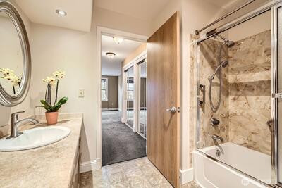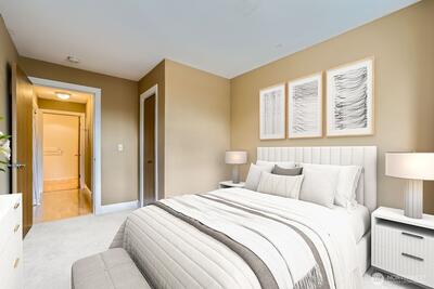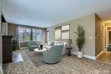 This impeccably maintained 2 bedroom, 1.5 bath end unit has good light with western views from the deck & living room. Most recent updates include new carpet in the bedroom and new SS range & microwave. The primary bedroom boasts expansive closets and a full bath. Another half bath and bedroom will accommodate visiting guests. There is a convenient pass-through from the kitchen to the dining area. The electric fireplace with its beautiful custom mantle will warm you on those chilly eves. The newer furnace is ready for A/C, if desired. An oversized garage has room to spare for extra storage. The building's exterior was just painted, including exterior doors; deck surfaces & railings redone and gutters replaced. LEVEL ENTRY from the elevator!