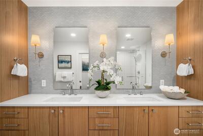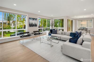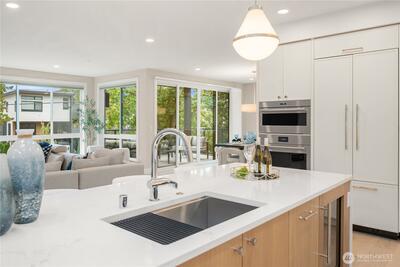Unrivaled luxury at Steeple Rock! This exceptional 1,993 sqft residence blends modern sophistication with timeless design. This 2-bdrm, den/flex, 2-bath masterpiece is bathed in southern light with Penthouse-inspired style and elegance. From flawless finishes to a serene sense of privacy, every detail reflects uncompromising quality. Chef's dream kitchen offers a 10.5' quartz slab island with waterfall accents & breakfast bar complimented with Wolf gas range, Sub-Zero & Jenn Air appliances. Walls of glass define the amazing great room. Primary suite offers spa-inspired bath & designer walk-in closet. Exclusive & secure building w/ luxurious lobby, elevator, reserved parking & storage. Steps to downtown Kirkland. True lock & leave lifestyle!