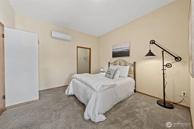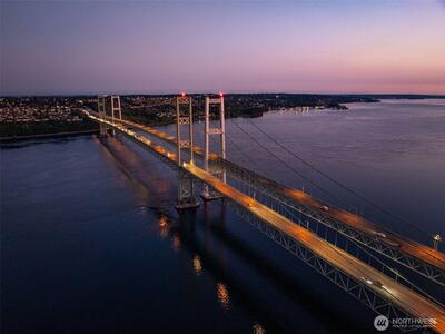 Extraordinary high-bank waterfront condominium in the coveted Narrows View community, featuring breathtaking views of Puget Sound and Mt. Rainier. This gated enclave offers a unique blend of tranquility, luxury, and convenience. A ground-floor unit offering effortless living, A/C, a new updated kitchen, spacious living room with walls of windows and private deck showcasing unobstructed water views and the iconic Narrows Bridge, 2nd bedroom and another full bath. The lower level features a 3rd bedroom/office suite with separate entrance and 2nd view deck, storage room, huge bonus room and 2-car garage accessed from inside the home. Quick access to charming Gig Harbor, medical care, shops, boutiques, and restaurants, I-5 and Sea-Tac Airport.