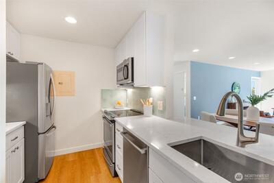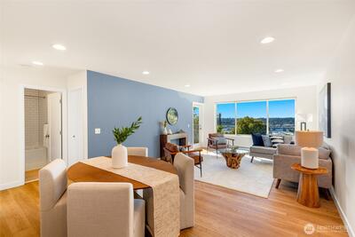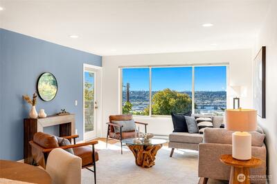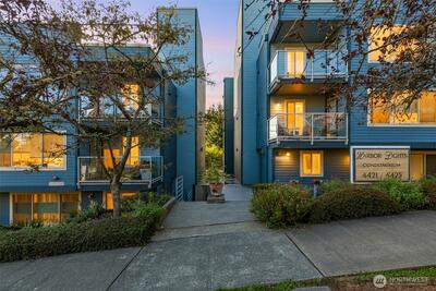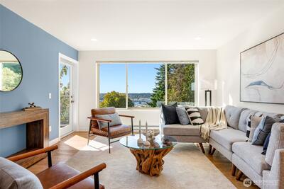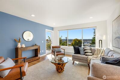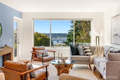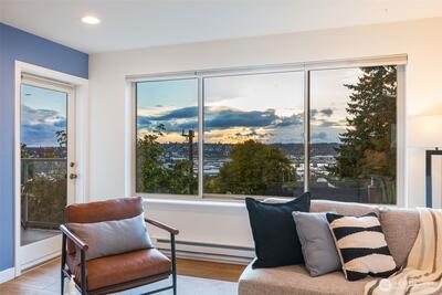 $10k CREDIT towards closing costs if closing by 11/30!! Perched above it all, this beautifully remodeled 2BR/1BA condo offers sweeping west-facing views of the Olympics & Salmon Bay, & stunning sunsets you’ll never tire of. The spacious & bright living room flows seamlessly to a large sun-drenched deck—perfect for entertaining & relaxing! Enjoy generous storage, a secure garage spot, & a warm, tight-knit community w/a well-run HOA. Tucked in a peaceful pocket just mins from neighborhood gems like Fremont Peak Park & Lighthouse Roasters, this is your own urban oasis. Nearly every inch has been thoughtfully updated w/quality finishes—just move in & enjoy cozy, care-free living w/views that truly wow. Pet friendly building with no rental cap.